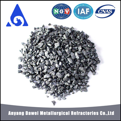 重庆碳化硅(SiC)及粘附在铸锭表面的夹渣,即得高品质硅铁产品。所用预熔合成渣成份重量含量为SiO2>50%,CaO<40%,Al2O3<5%,余量为其它成份,该合成渣是采用洗净的碎硅石(SiO2>97%),碎莹石CaF2>80%和生石灰CaO>85%在矿热炉或者冲天炉,电熔渣炉内熔融、经水淬,干燥而成。所用碎硅石的粒度为18-50mm,莹石粒度为10-50mm。